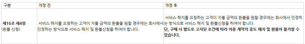 서비스 내 신규 프로모션(특가) 상품 출시 예정에 따라, 관련 환불 규정을 명확히 안내해 드리기 위해 통합서비스 이용약관이 일부 개정될 예정입니다.